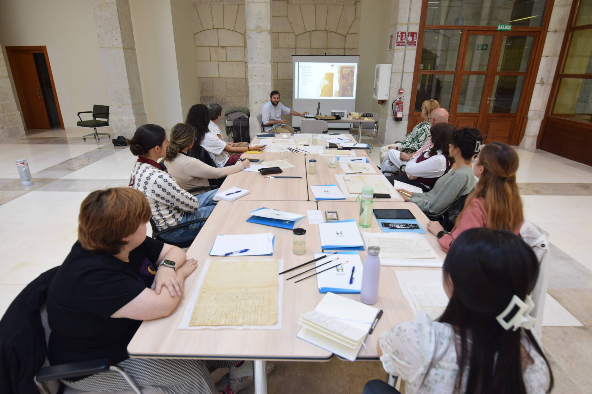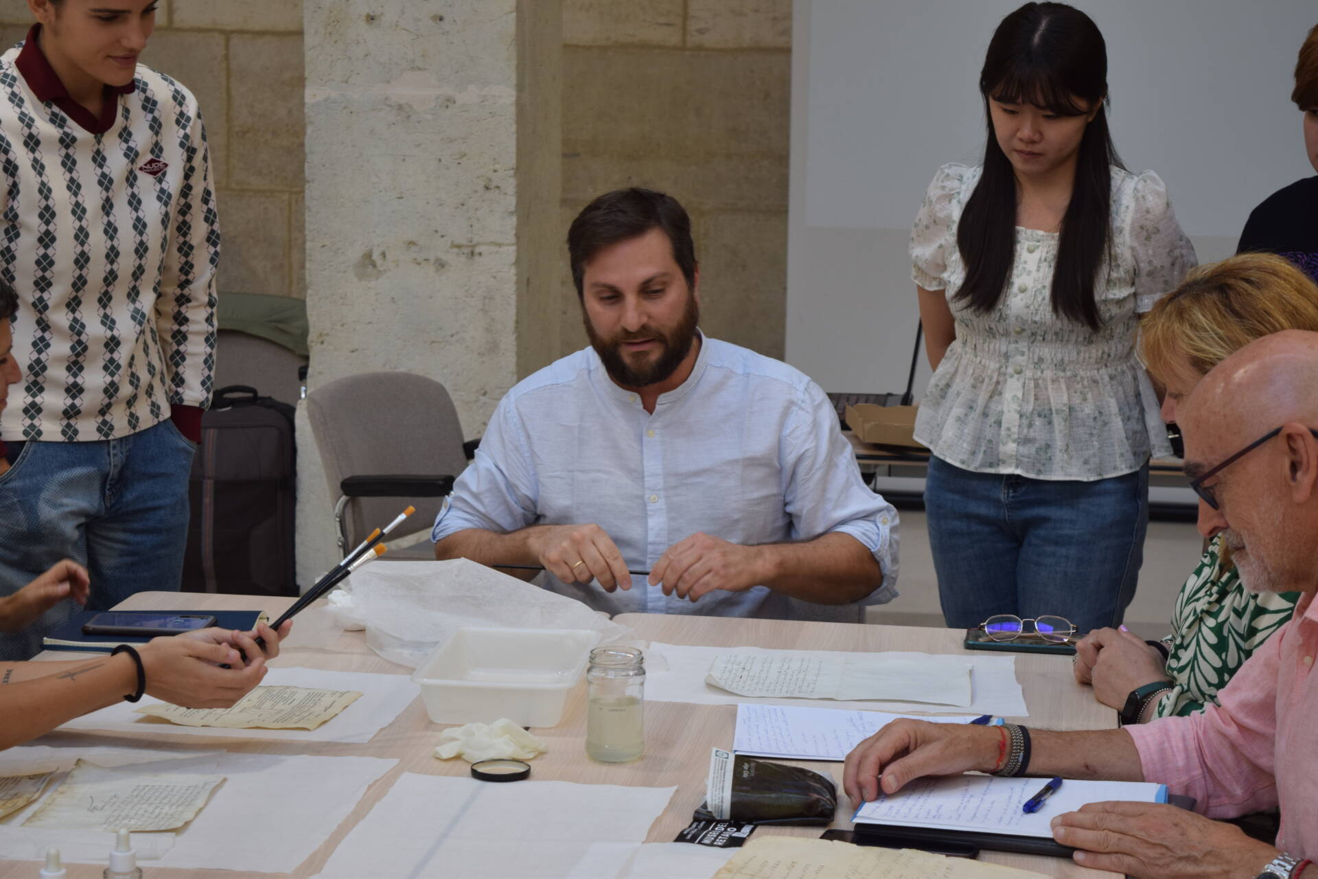 Desde ahí, el segundo bloque del curso ha consistido en reconocer las principales causas del deterioro que sufre el papel, las tintas ferro galácticas y las técnicas no invasivas para su diagnóstico. Por último, se han enseñado técnicas de limpieza de documentos, métodos de conservación preventiva de libros documentos y planos y han realizado pequeñas intervenciones prácticas para la consolidación de desgarros y roturas.
