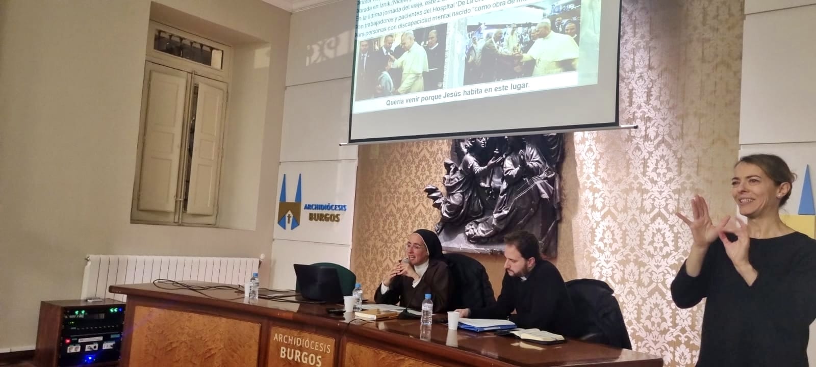 Finalmente, tres personas han ofrecido su testimonio personal de fe y vida. Feli, ciega de nacimiento y feligresa de la parroquia de Nuestra Señora del Rosario, ha contado como su mayor deseo era «ver a Dios con los ojos del alma». Virginia, madre de quince hijos —dos de ellos con discapacidad—, ha compartido con los asistentes cómo transmite junto con su marido la fe a sus hijos con discapacidad. Y Thalía, que trabaja con personas con discapacidad y es catequista en Medina de Pomar, ha narrado cómo Dios le había mostrado que su vocación es estar con las personas con discapacidad.